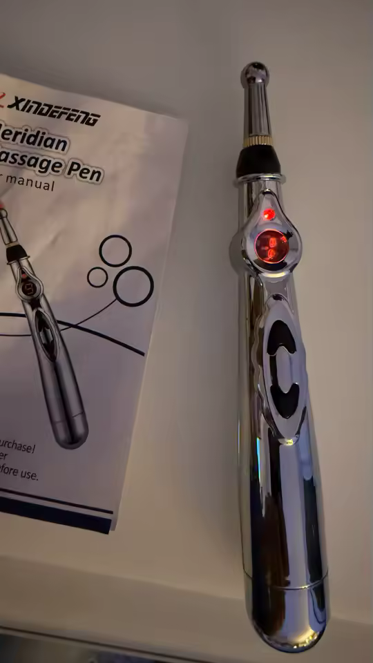 Con este lápiz de acupuntura puedes darte pequeños “toques” eléctricos controlados que ayudan a relajar músculos y disminuir molestias leves de forma rápida y cómoda.