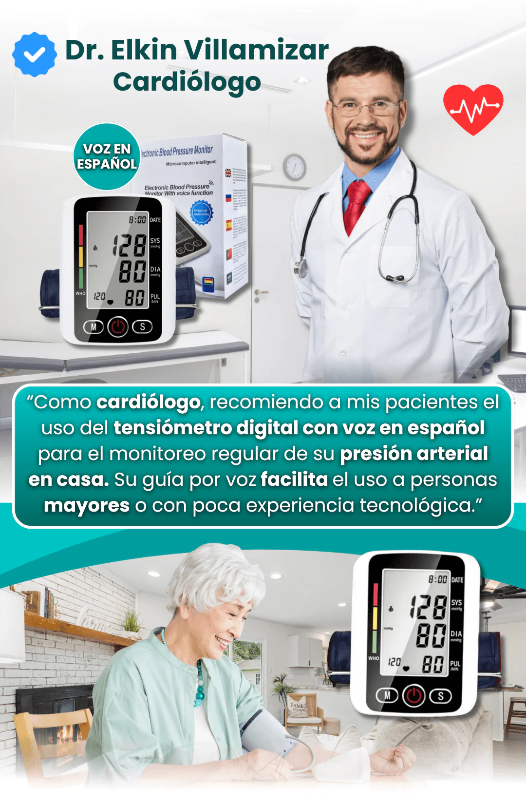 ¡Cuídate y vive mejor con Tensiómetro de Brazo con Voz en Español ❤️‍🩹✨
